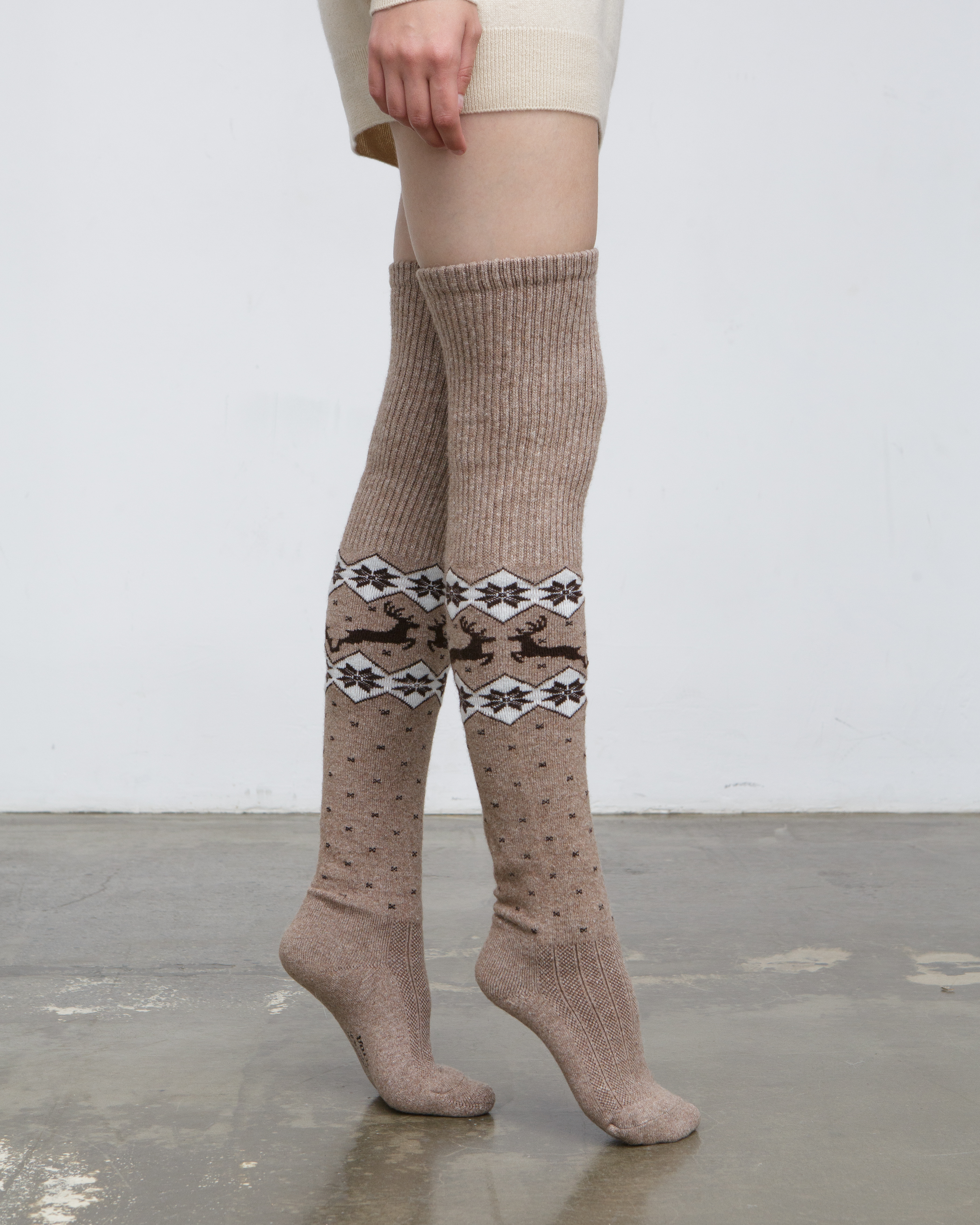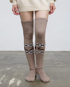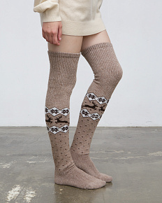 Теплые чулки из монгольской шерсти коричневые с рисунком