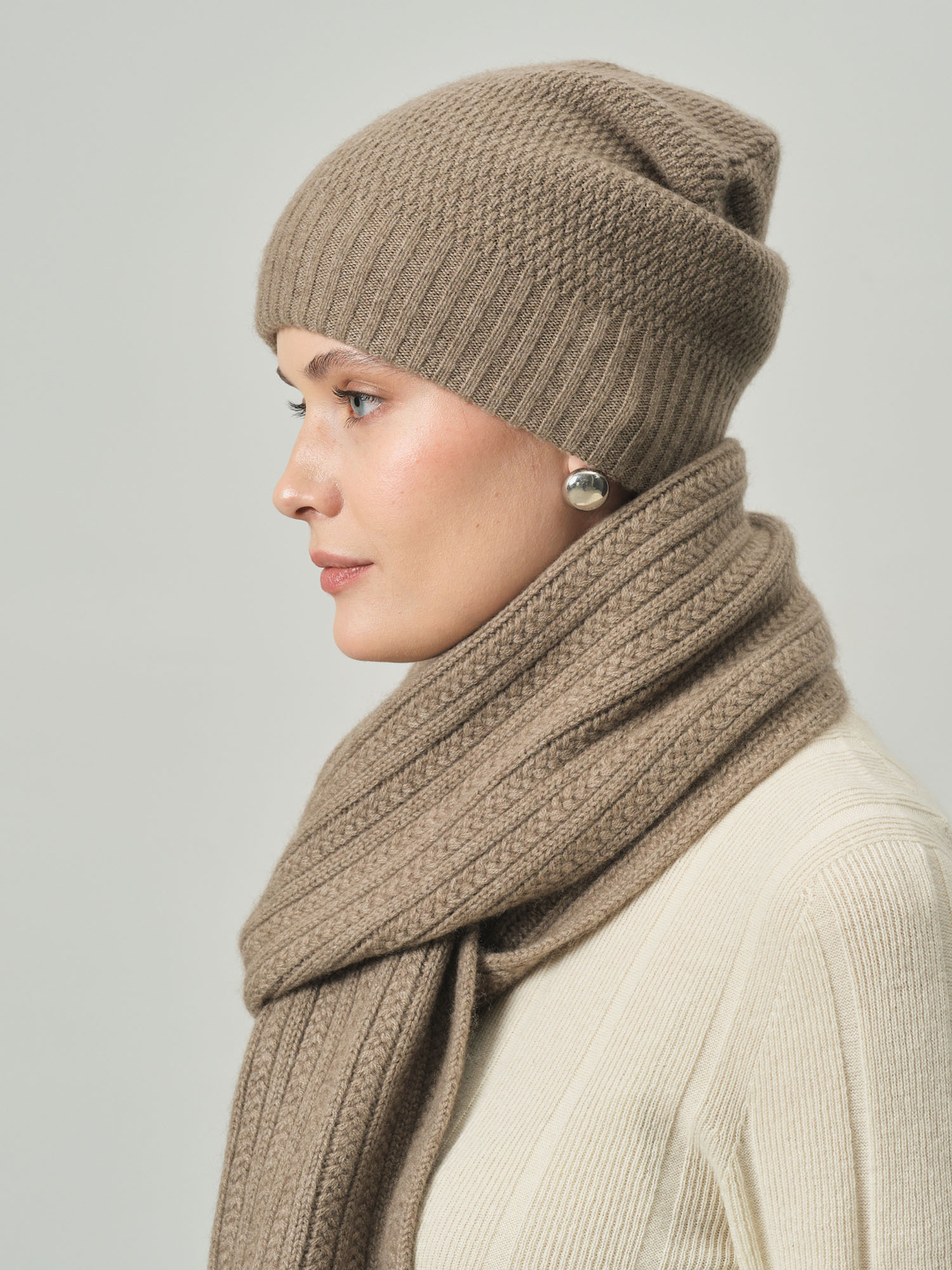 Шапка из кашемира — это гармония элегантности, уюта и универсальности. Мягкость кашемира и стильный цвет делают её идеальным выбором для повседневной носки или дополнения изысканных зимних образов.
