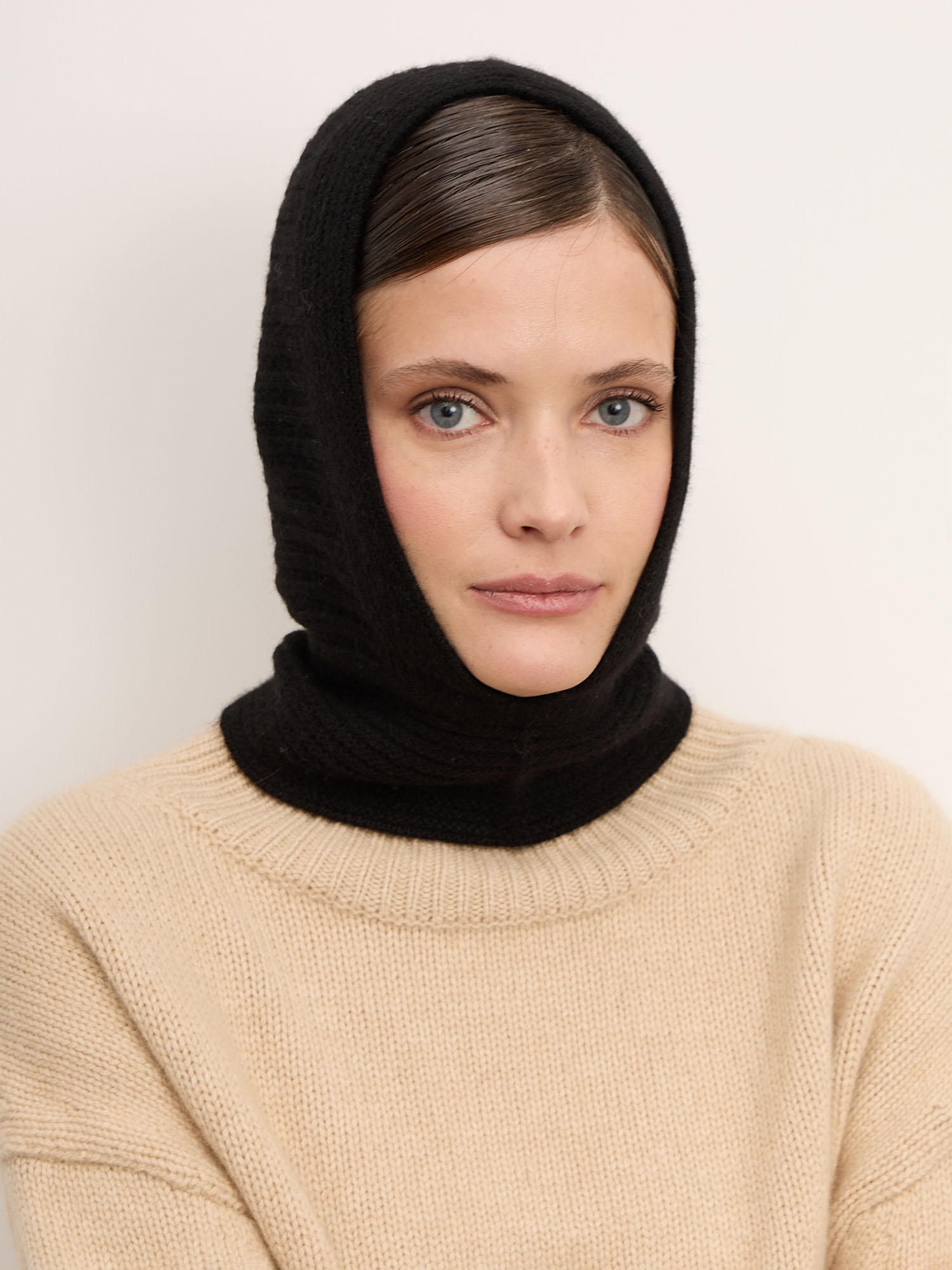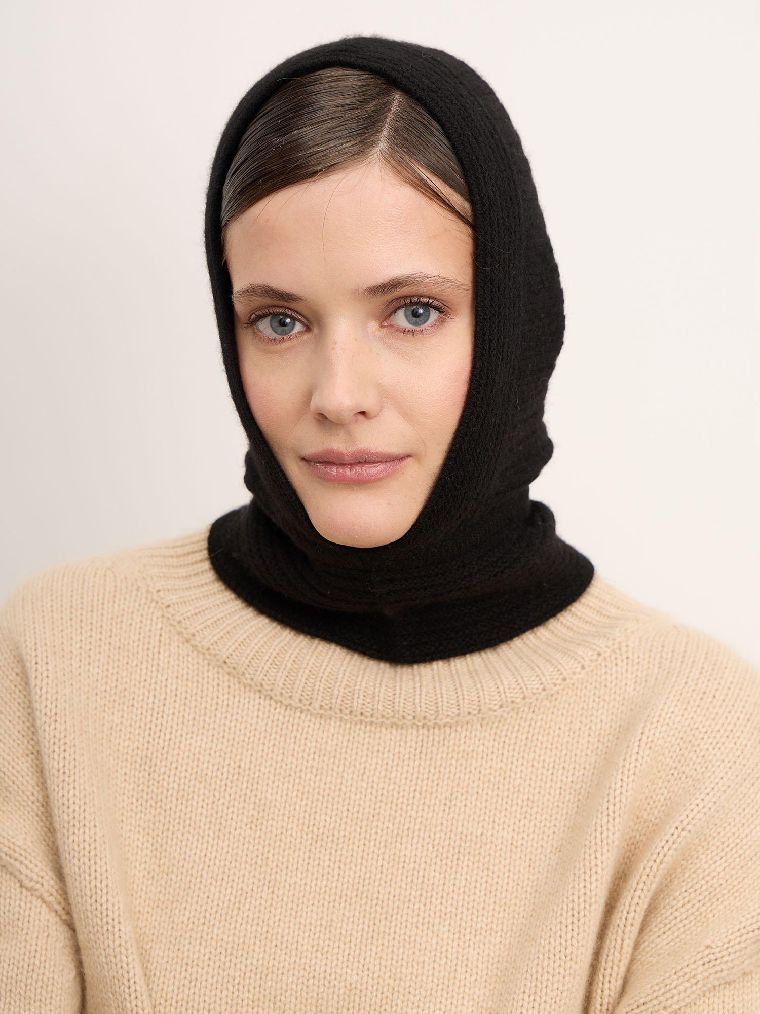 Балаклава выполнена из тонкого кашемирового трикотажа с эластичной вязкой, которая мягко облегает контуры головы и шеи. Лаконичный дизайн без лишних деталей делает изделие универсальным — оно легко сочетается с любой верхней одеждой и подходит как для повседневных, так и для городских образов.