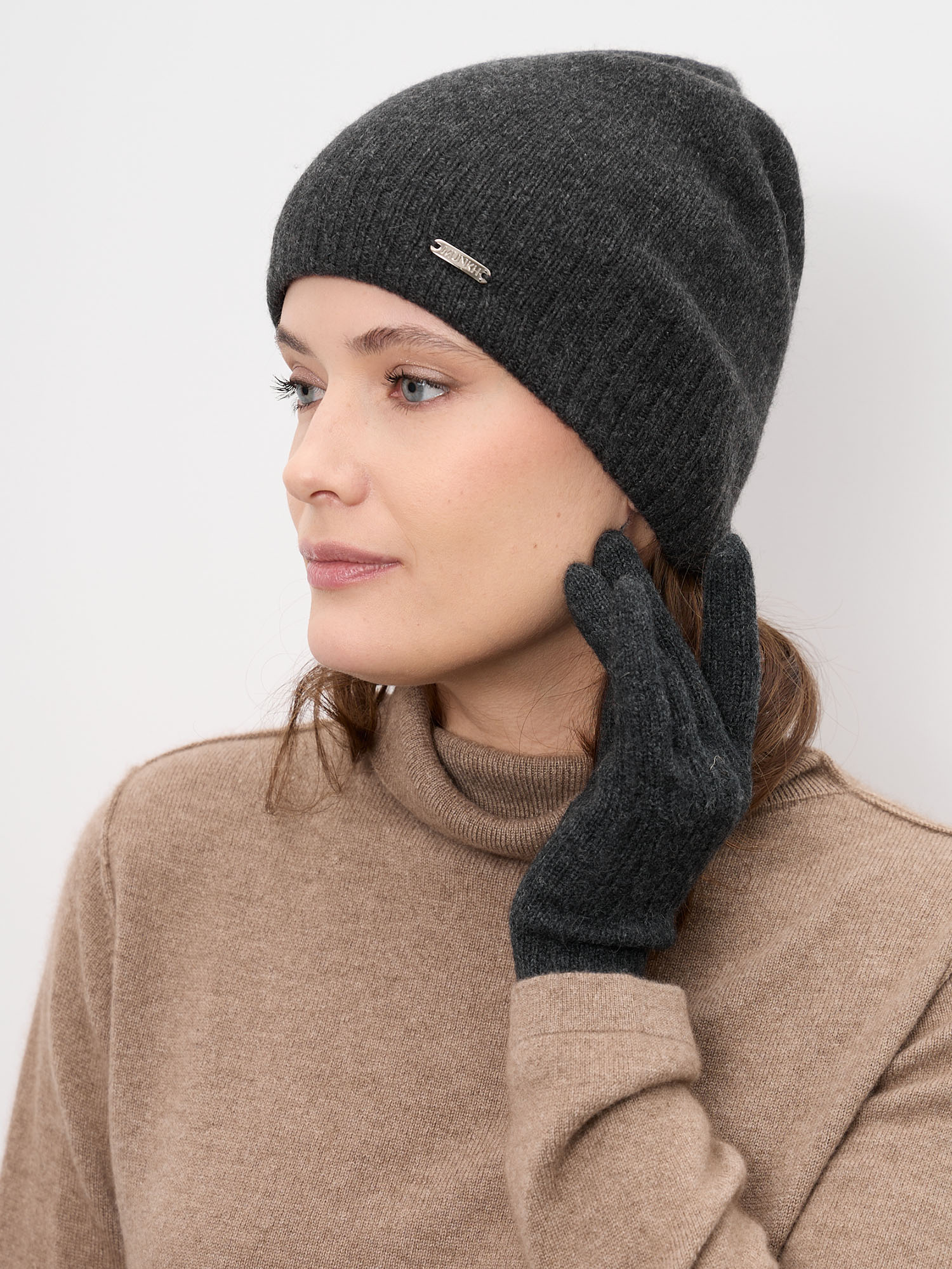 Лаконичная шапка из натурального кашемира в универсальном графитовом оттенке — идеальный аксессуар для холодного сезона. Сдержанный дизайн и благородный цвет делают модель базовой и легко сочетаемой с верхней одеждой любого стиля — от классики до casual. Шапка подчёркивает аккуратный образ и добавляет ощущение утончённого комфорта.