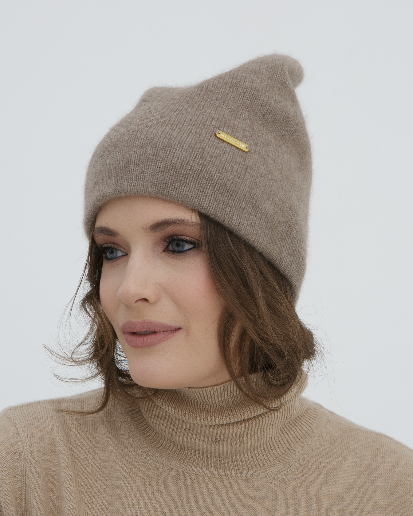 Шапка кашемировая двойная с узором UL капучино