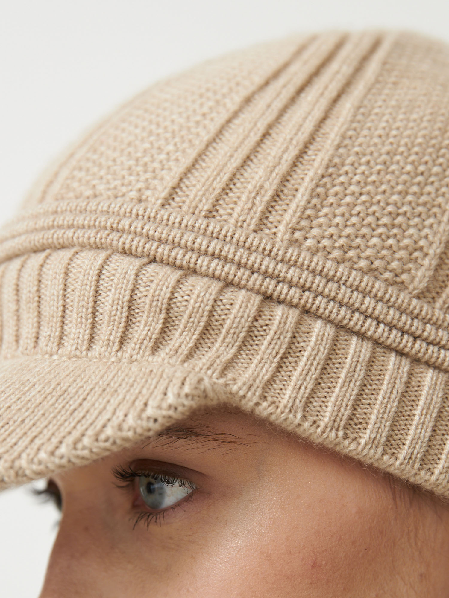 Бежевый оттенок придает шапке элегантность и универсальность, позволяя ей гармонично вписаться в любой гардероб. Дизайн с козырьком добавляет оригинальности и утонченности, делая шапку не только практичной, но и стильной. Уход за изделием прост: рекомендуется ручная стирка при низкой температуре, что поможет сохранить её мягкость и первоначальный вид на долгие годы. Этот аксессуар станет вашим любимым спутником в прохладные дни, сочетая тепло, комфорт и изысканный внешний вид.