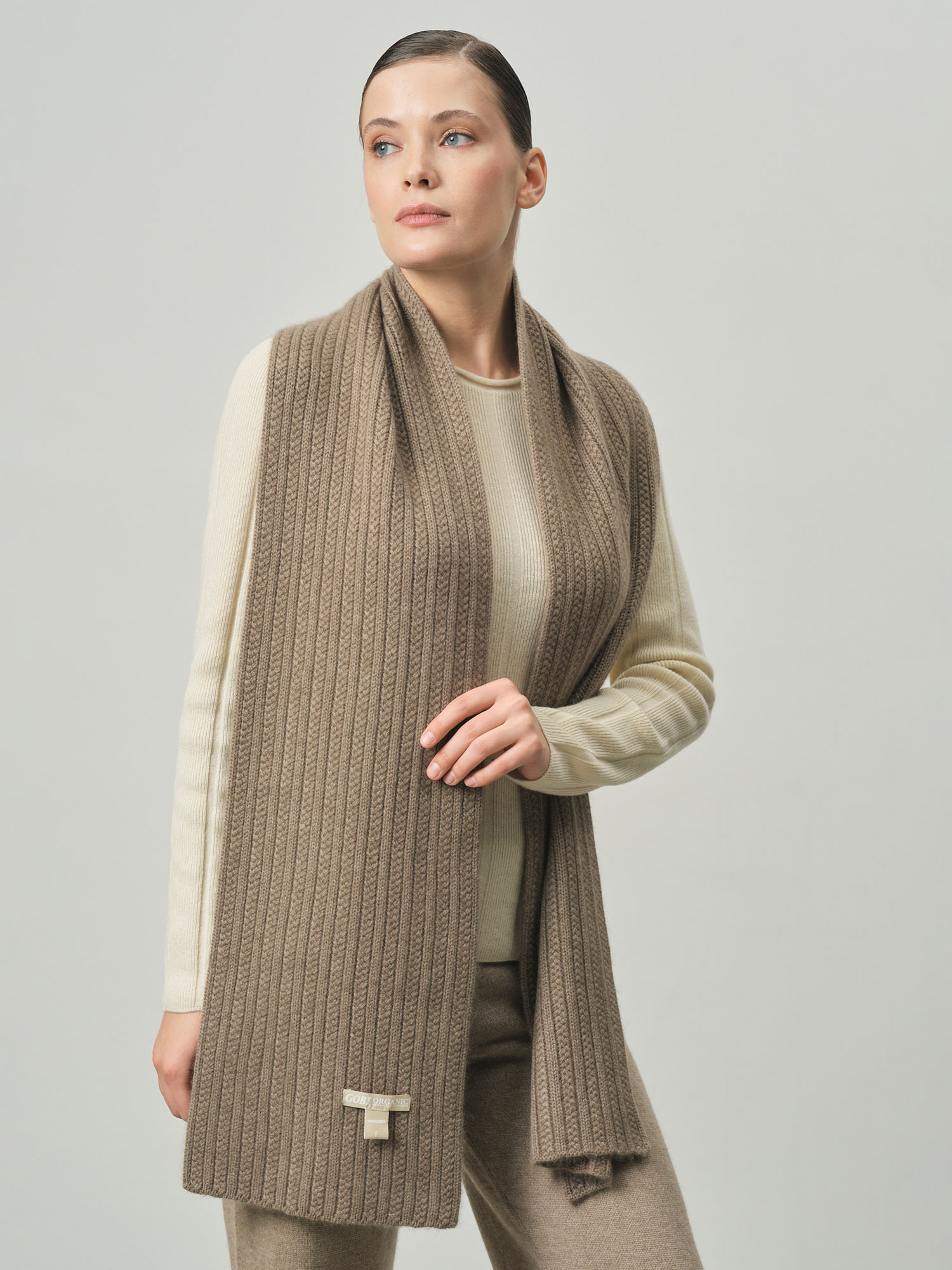 Шарф из кашемира цвета "капучино" — это стильный и утонченный аксессуар, созданный для тех, кто ценит качество и комфорт. Приятный теплый оттенок "капучино" придает изделию универсальность, позволяя легко сочетать его с различными элементами гардероба. Выполненный из 100% кашемира, шарф обладает исключительной мягкостью, легкостью и способностью сохранять тепло.