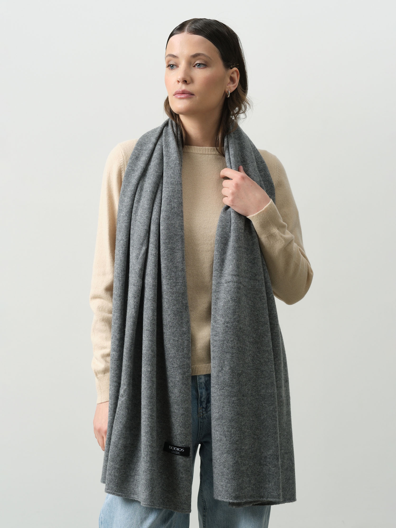 Палантин из кашемира 15068b графит