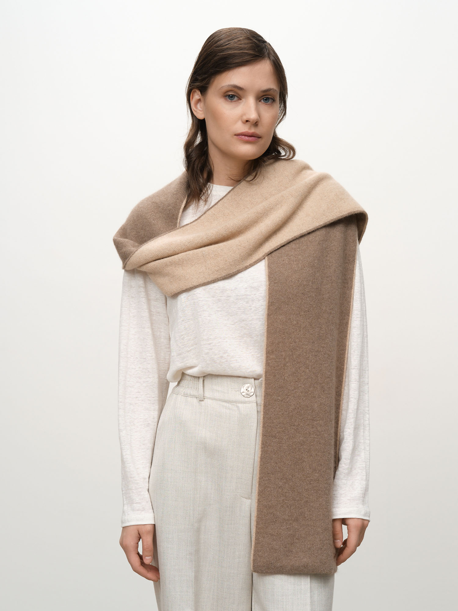 Кашемировый шарф в оттенке капучино стал моим любимым аксессуаром. Цвет меняется в зависимости от освещения - очень интересный эффект. |