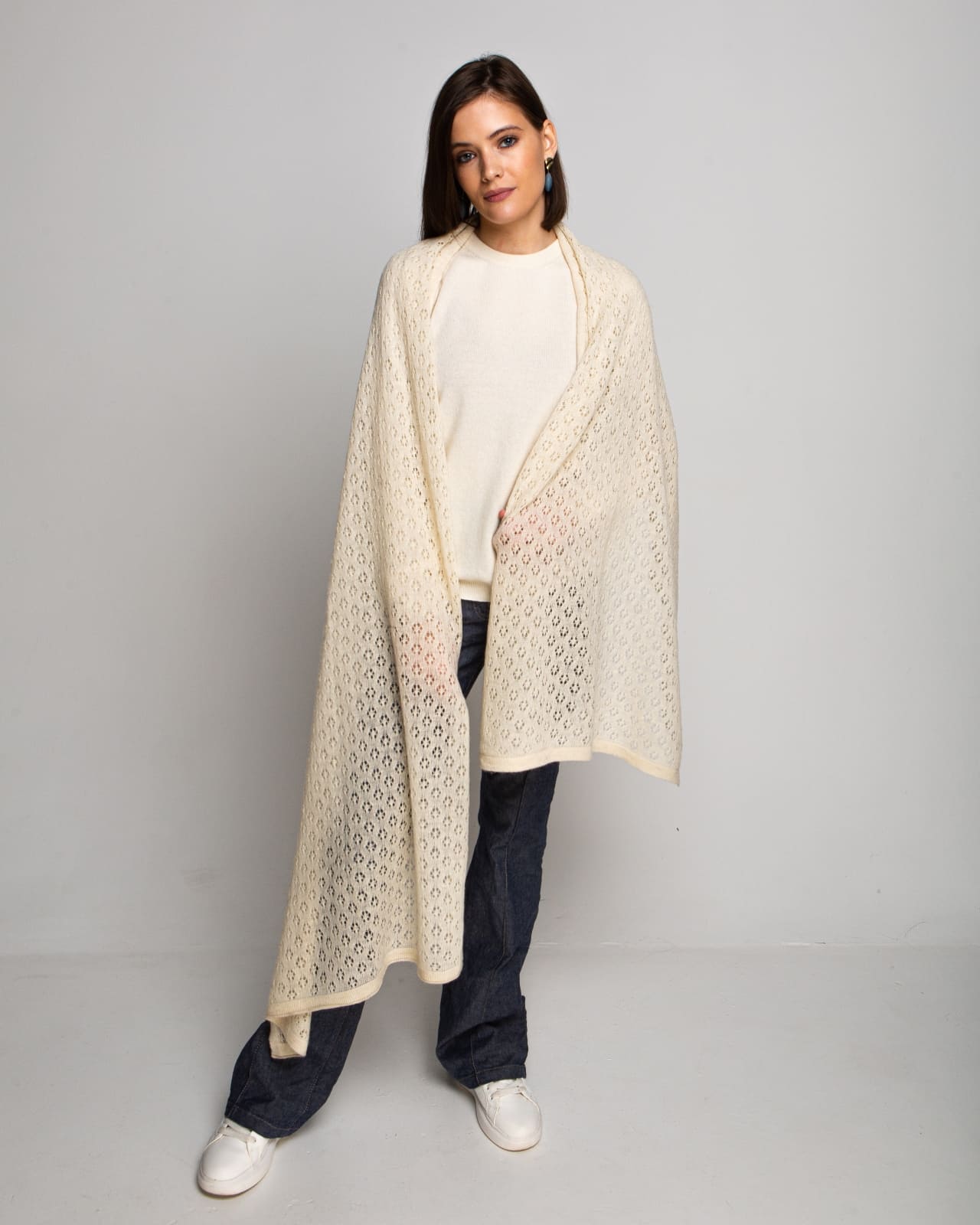 Этот палантин выполнен из высококачественной шерсти, которая отличается мягкостью и тёплыми свойствами. Благодаря своей лёгкости, он удобно драпируется, создавая объёмные и красивые складки. Бежевый цвет палантина легко сочетается с другими элементами гардероба, добавляя теплоту и гармонию вашему образу. Размер 70*200 см