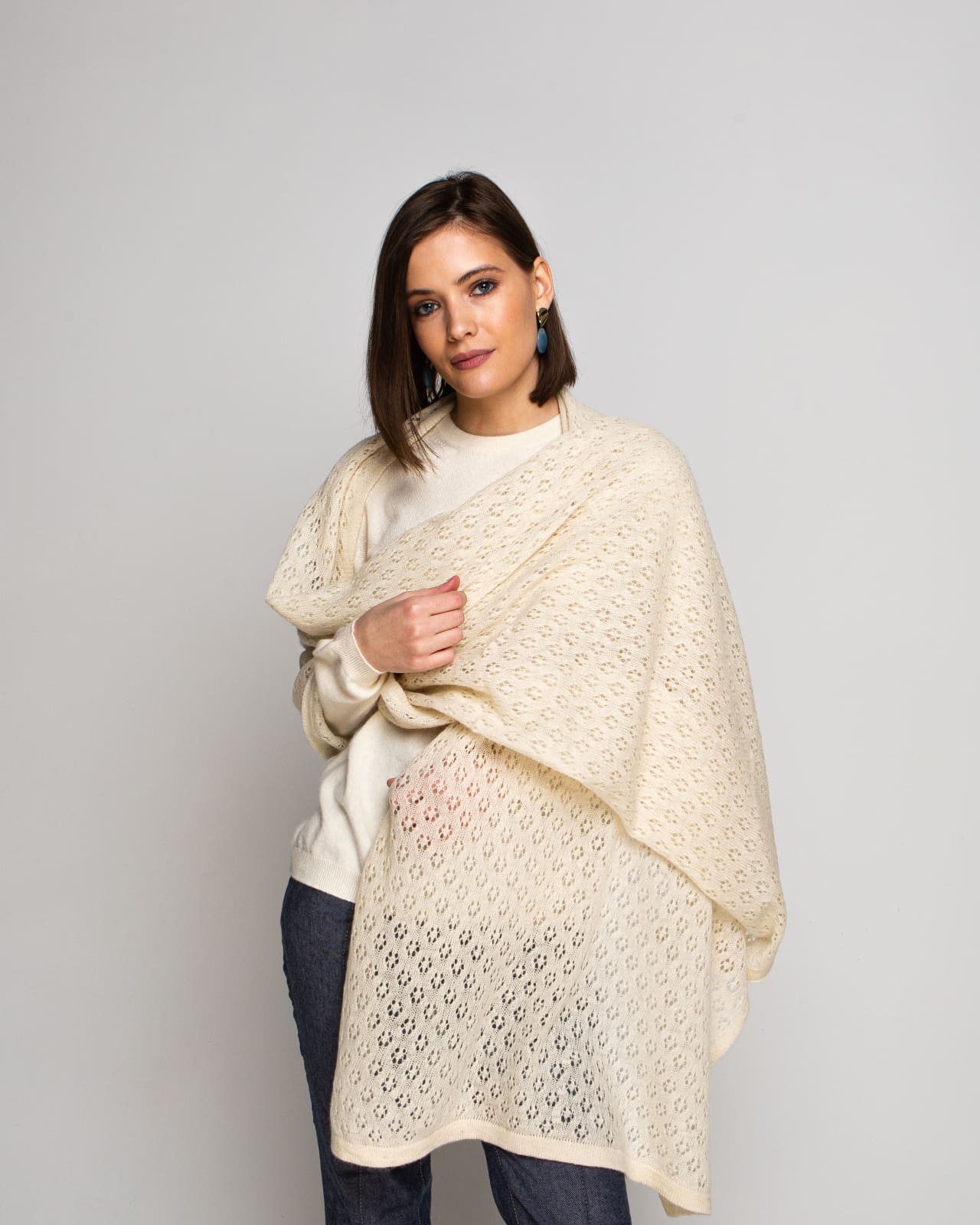 Ношу палантин с удовольствием. Чтобы избежать покалывания от шерсти при чувствительной коже, я отпарила палантин через марлю, смоченную в уксусе. |