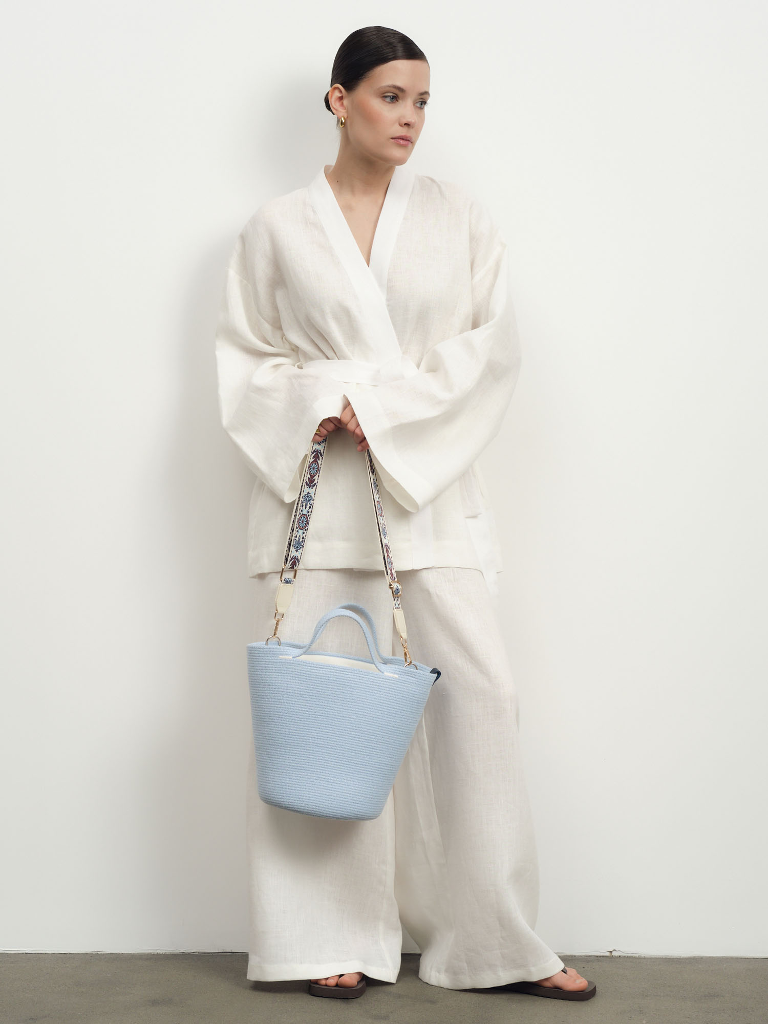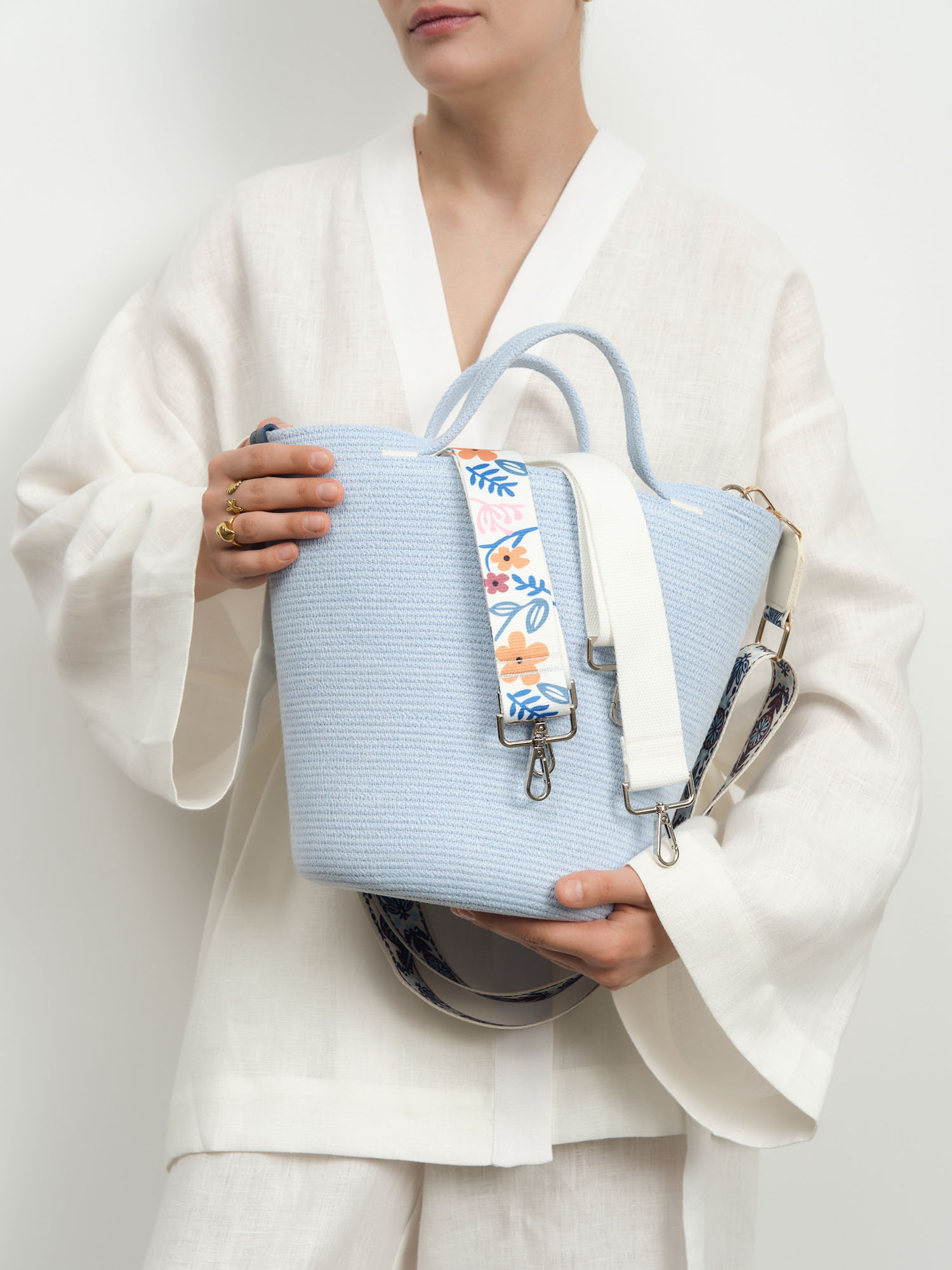 Стильная сумка из натурального джута с нежным голубым оттенком – идеальный аксессуар для летнего сезона. Модель Andrea сочетает в себе экологичность натуральных материалов, модный дизайн и практичность.