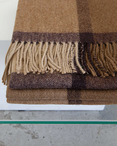Плед мягкий, не колется. Красивая клетка. По толщине - самый толстый из трёх купленных следов. Более подробно в моем отзыве на полосатый плед из верблюжьего пуха.