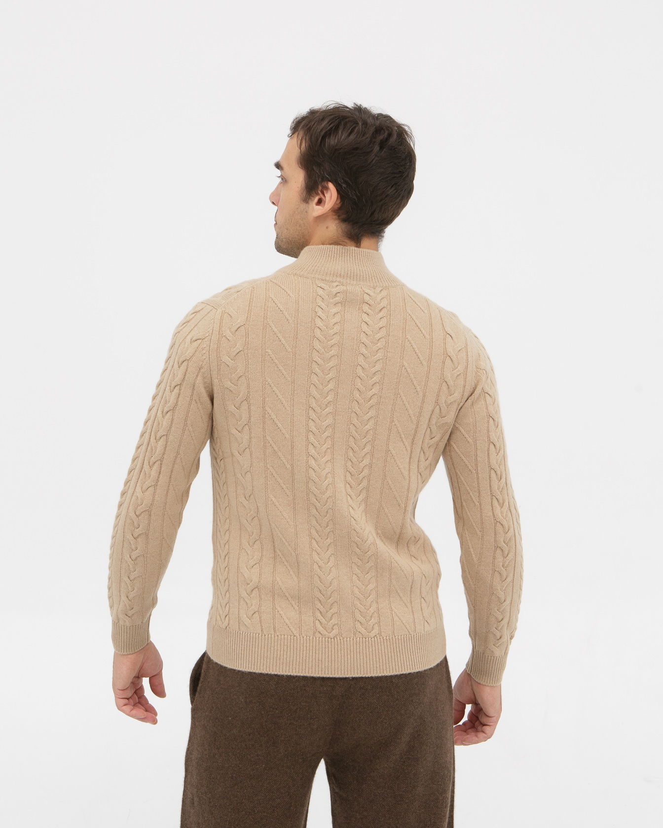 Роскошный мужской джемпер из 100% натуральной шерсти верблюжонка в благородном бежевом цвете – это воплощение премиального комфорта и стиля. Этот редкий материал ценится за свои исключительные свойства и неповторимую мягкость.