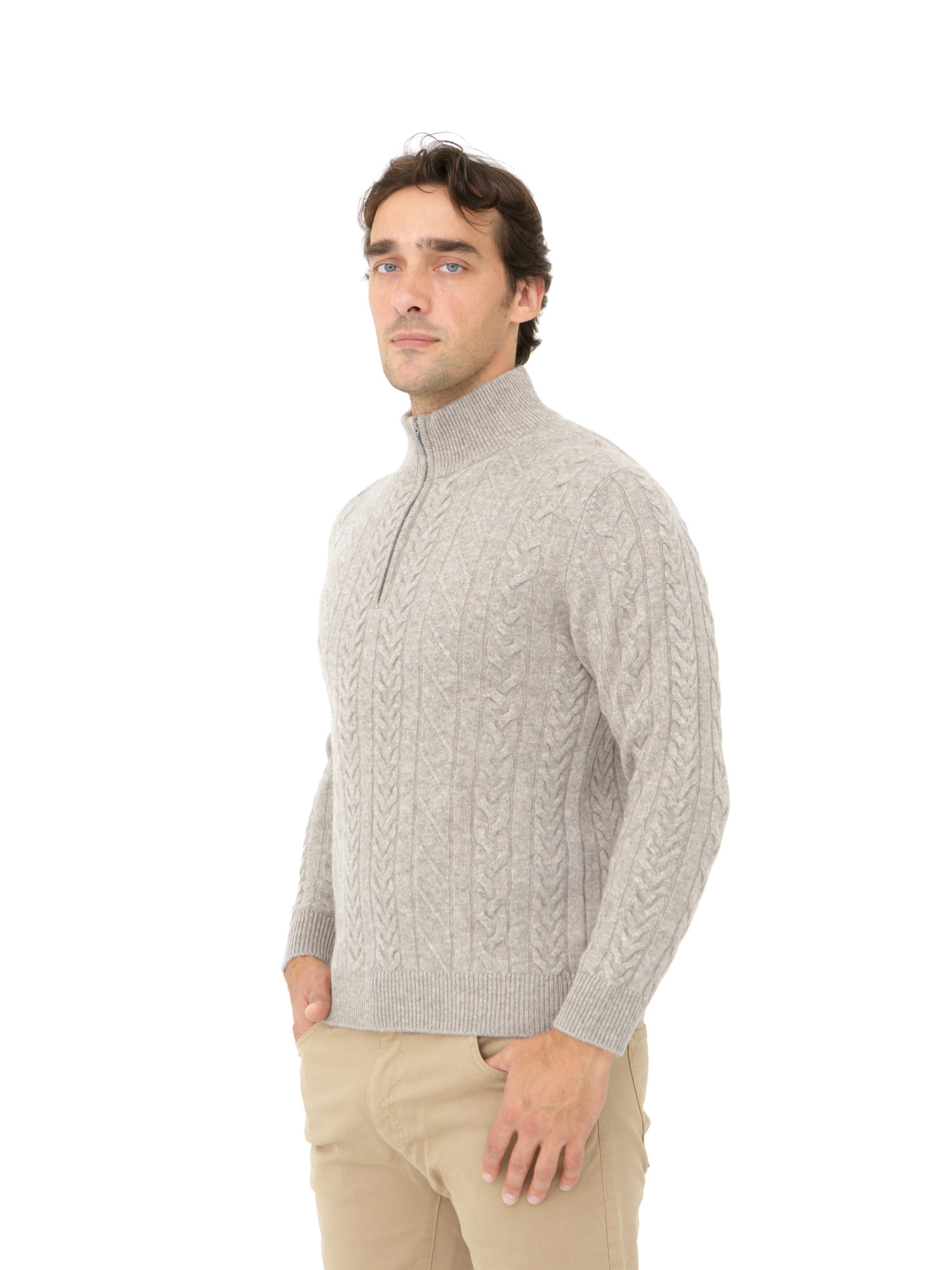 Классический крой с воротником на молнии делает модель функциональной для любого случая. Молния позволяет регулировать степень комфорта и создает стильный эффект многослойности. Вязаный узор добавляет текстуру и визуальный объем.