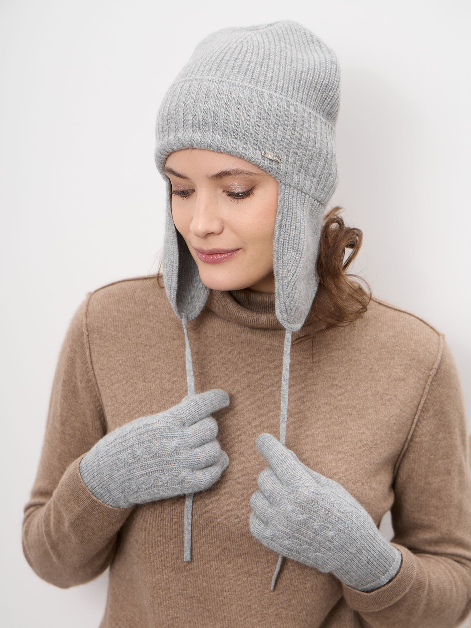 Двойная вязка обеспечивает дополнительное тепло и аккуратную форму. Ушки с завязками защищают от ветра и холода, а эластичная структура вязки гарантирует комфортную посадку без давления.