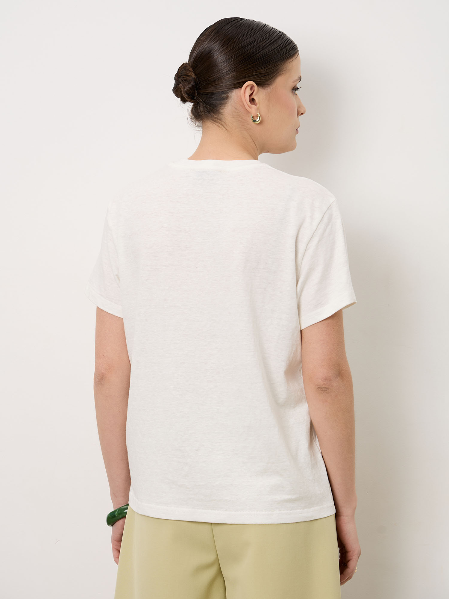 Короткий рукав, аккуратная обработка горловины, мягкая фактура ткани, ровные швы, комфортная посадка.
