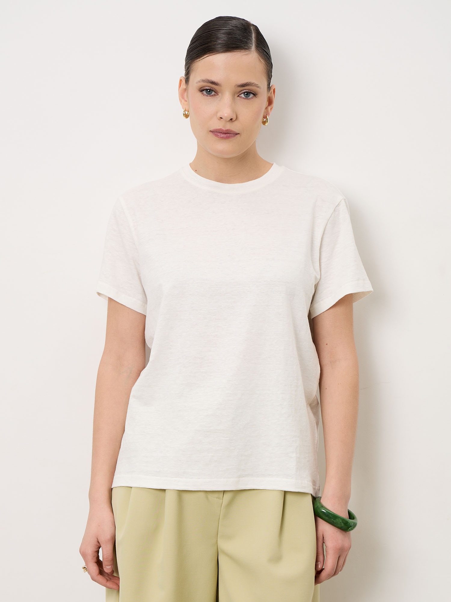 Свободный прямой силуэт с классическим круглым вырезом. Лаконичный крой делает модель универсальной и практичной.