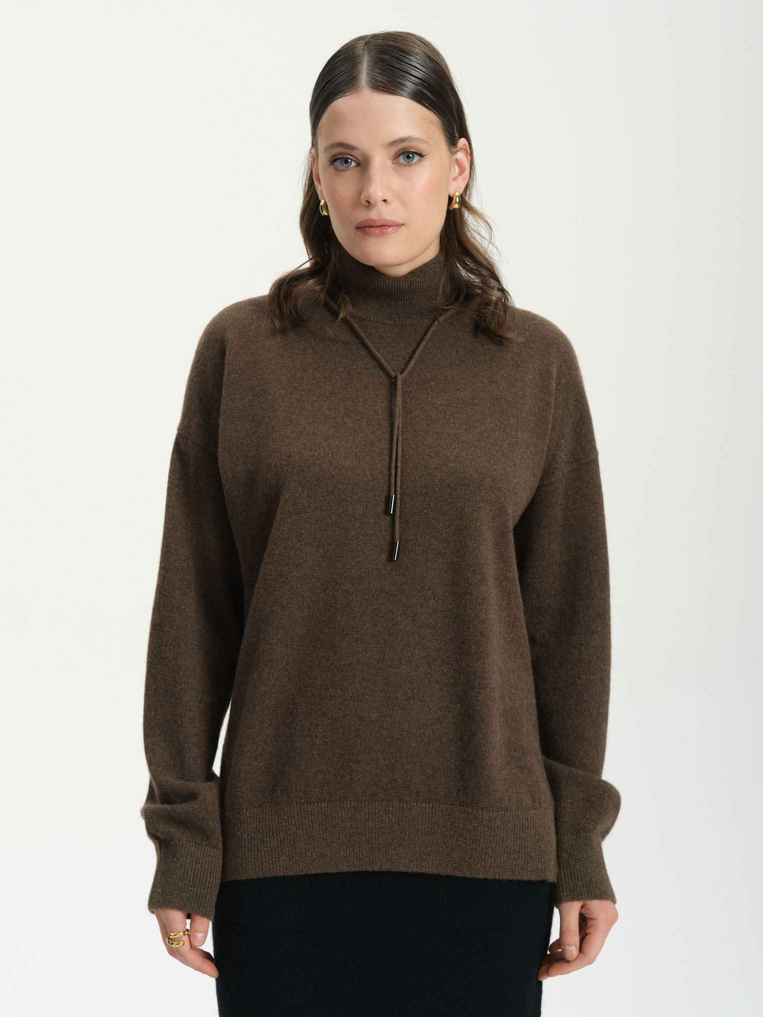 Высокий ворот с завязками не только защищает от холода, но и добавляет изделию особый стиль. Свободный крой и эластичные манжеты обеспечивают комфорт и свободу движений, делая джемпер универсальным выбором для повседневного ношения. Завязки на вороте добавляют современный акцент и позволяют регулировать прилегание изделия к шее.