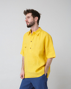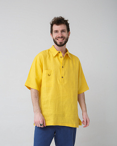 Рубашка льняная поло желтая 26012