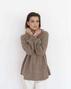 Непринужденный силуэт и изящная фактура вязки формируют элегантный внешний вид при максимальном комфорте носки. Благородный тон капучино служит идеальной основой для создания гармоничных цветовых сочетаний в различных стилистических направлениях. Свитер подходит как для формирования повседневных, так и более торжественных образов.