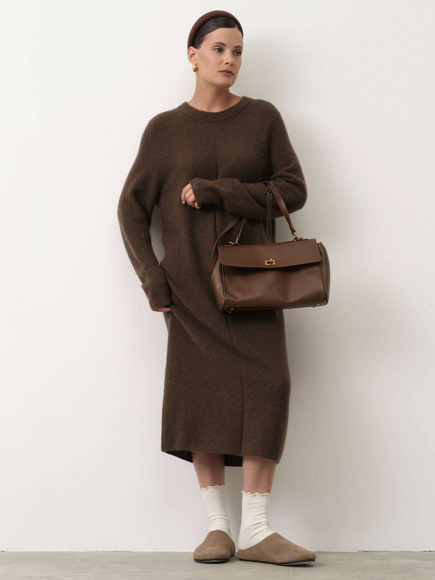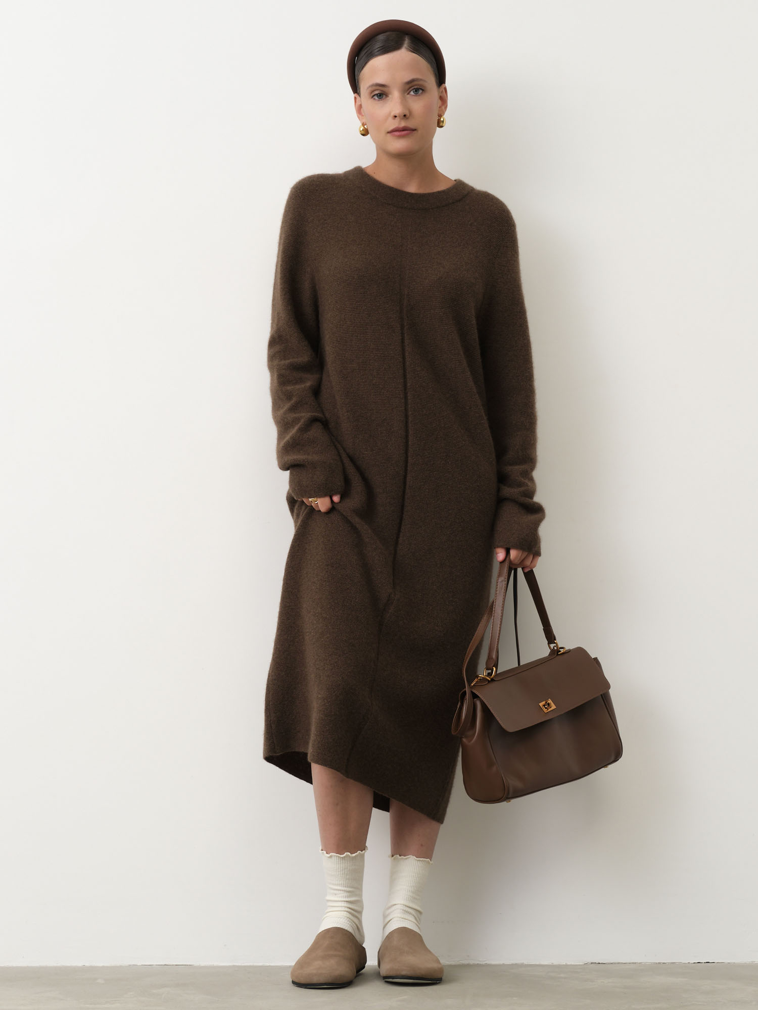 Очень теплое и комфортное платье: лёгкое, мягкое, уютное. В процессе эксплуатации трикотаж немного распушился. Размер XL соответствует 48 размеру. |